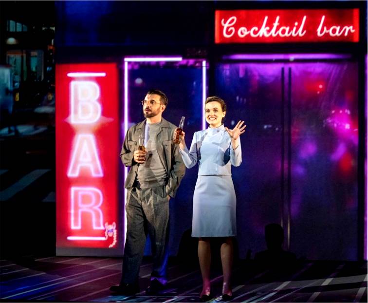 Si Lucille Cazenave et Camille Nicolas retrouvent, respectivement, leurs emplois de Kathy, la fille de province venue chercher son grand amour à Manhattan – et préférant finalement en repartir pour, enfin, se marier ! – et d’April, l’hôtesse de l’air si délicieusement niaise à laquelle il revient d’interpréter, avec Bobby, le duo « Barcelona » – l’un des moments les plus cruels de la partition ! – c’est à une nouvelle venue dans la troupe qu’est confié, en Avignon, le rôle de Marta : Virginia Sirolli.