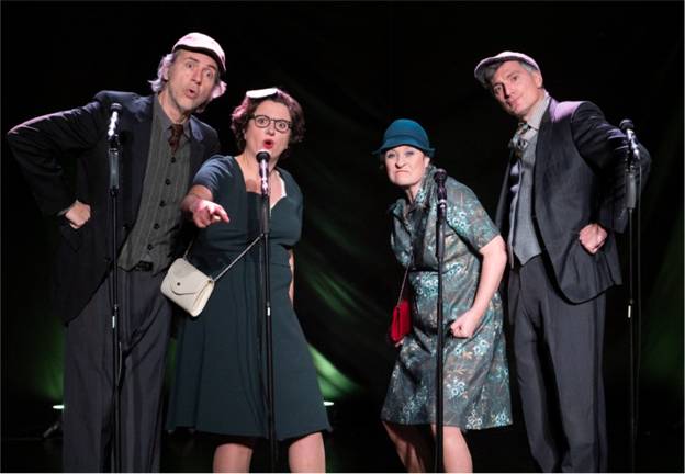 Ils sont quatre sur scène, tous vêtus à la mode des années 40, et, s’inspirant du style « barbershop » américain, ils interprètent un répertoire des plus variés, mais ici exclusivement en français.